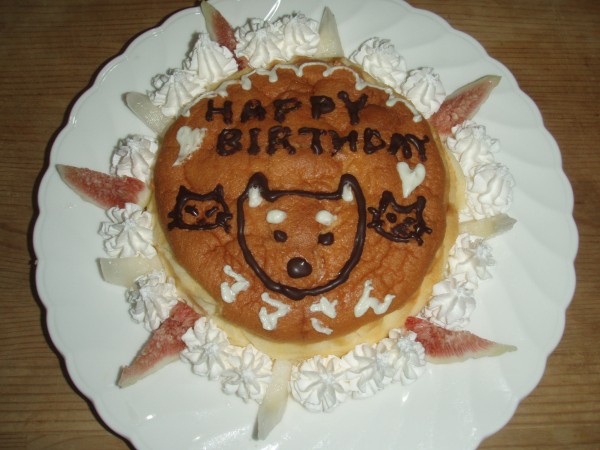 ママさんの出かけている間に、みやもとケアマネといたがきさんが喫茶部で頑張(大騒ぎ)って作ったバースデイケーキ!